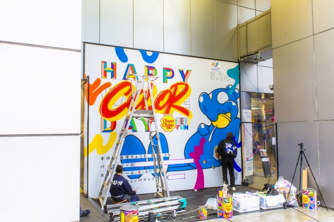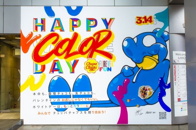 HAPPY COLOR DAY!ホワイトデーを、もっとカラフルに。チュッパチャプスが掲載中の真っ白な広告がグラフィティーアートに?!