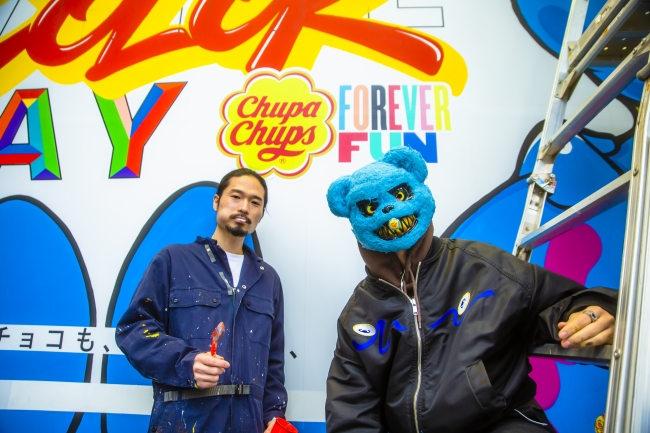 「チュッパチャプスは昔からずっと舐めていたし、オシャレでイメージもよかったから今回のお話はすぐに面白そうだなって思いました。日本で大々的に大衆の前で描くのも、もちろん広告にペイントするのも、誰かとコラボするのも初めてです。僕一人では絶対にできないカラフルなものが作れて、まさにFOREVER FUNって感じで良かったです。」