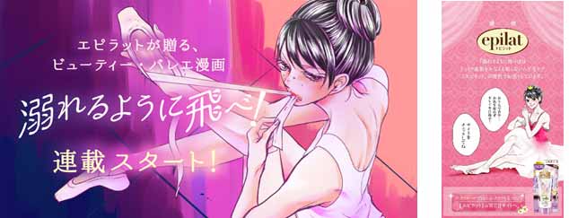 クラシエホームプロダクツのむだ毛処理剤No.1ブランド「エピラット」と株式会社白泉社との異色のコラボレーションによる、ビューティー・バレエ漫画『溺れるように飛べ!』が、白泉社「マンガPark」にて4月2日から連載を開始いたします。作品を手掛けるのは、玉城るか先生。白泉社まんが賞 LMS (LaLaまんが家スカウトコース)ベストルーキー賞受賞の若手作家です。