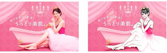 サロンに通わなくても、自宅で簡単にむだ毛処理ができることを、華やかなバスルームを舞台に表現したキービジュアル。人気モデルの松木育未さんに、「エピラット」のシンボルであるバレリーナ役を演じていただき、肌を傷めず、うっとりするような肌触りを実現することを伝えています。