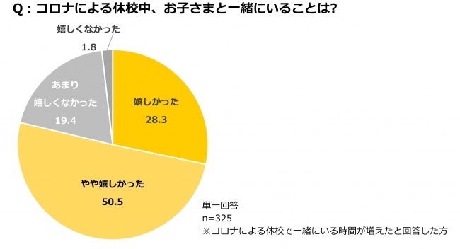 子どもと一緒にいる時間が増えたことに対しては約8割が「嬉しかった」!