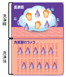 特長的な構造を持つ「洗う成分」により、「ラメラ」に浸入しない洗浄を実現。
