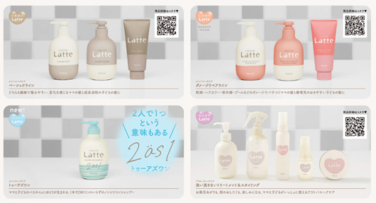 「マー&ミー ラッテ」は、シャンプーをはじめとするヘアケアアイテム選びに、ママ目線(I)でも、子ども目線(You)でもない、『We』という新たな選択肢をご提案、“わたしにも、こどもにも、うれしい。” をかなえる商品を展開してまいりました。