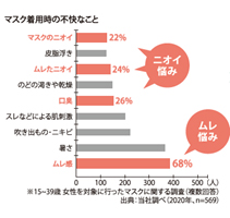 マスクを長時間着用する昨今の生活様式に伴い、マスク着用時のムレやニオイを気にする人が増加しています。また、息苦しさから、マスク下での口呼吸の習慣化も問題になっています。