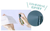着用する前のマスクの外側になる面に、20cmほど離して3~5プッシュ、均一にスプレーした後、よく乾かしてから着用してください。