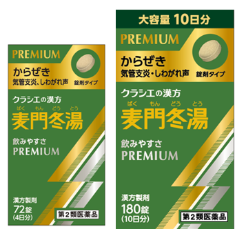 漢方薬の「麦門冬湯」は、水分や飴では潤しにくい気道や気管支の粘膜まで潤し、からぜきやたんが切れにくく、のどにからんだりするときの咳、気管支炎やしわがれ声の症状に効果があります。その「麦門冬湯」を飲みやすい錠剤タイプでご用意いたしました。また、じっくり治したい方に大容量もラインアップしました。からぜきでお悩みの方、コンコンと咳が止まらない方、咳が出て痰が切れにくい方に「麦門冬湯エキス錠クラシエ」をお薦めします。