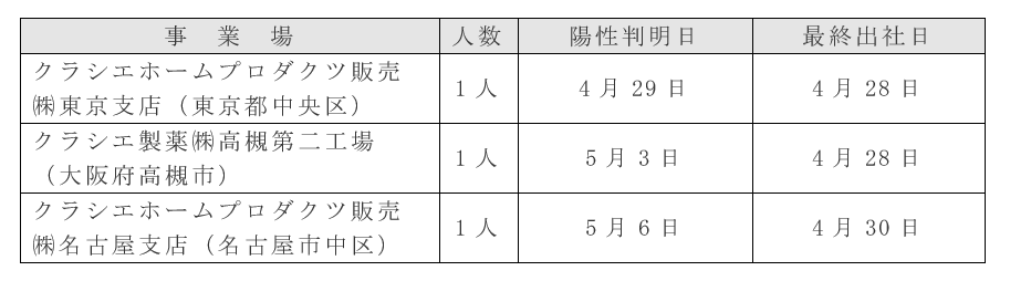 感染した従業員については以下の通りです。