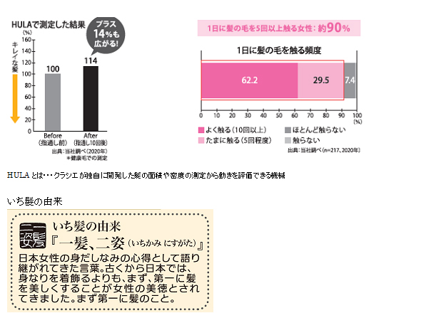 一方で、1日に髪の毛を5回以上触る女性は約90%にも及びます(2020年当社調べ)。髪をケアしていても触ってしまうことで、気付かないうちに、まとまらない髪になっているのです。