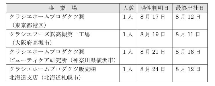 感染した従業員については以下の通りです。