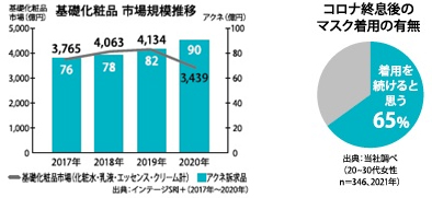 基礎化粧品市場が縮小する中、マスク着用により、ニキビに悩む人が増え、アクネケアセグメントは拡大を続けています。