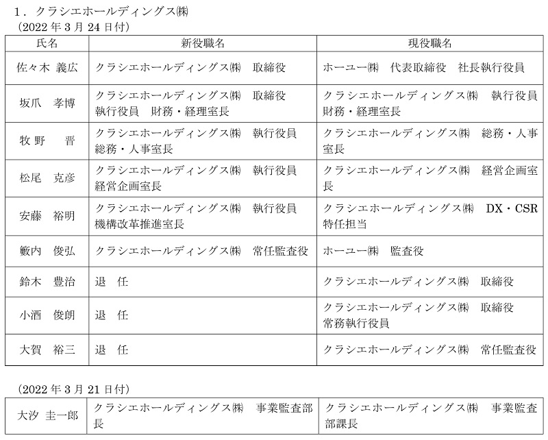 当社は、当社および傘下の事業会社の取締役、執行役員等の異動を決定しましたので、お知らせいたします。