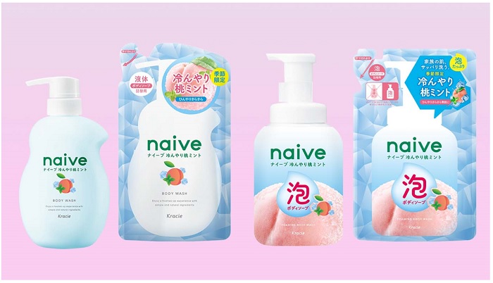 「ナイーブ 冷んやり桃ミント」は、ブランドの最大の特長である“サッパリ”を生かしつつ、「桃果汁&ミントエキス」(うるおい成分)と「メントール」(清涼成分)を配合し、ジメジメと暑い日本の夏も過ごしやすくなるような冷んやり感のあるすっきりとした洗い心地を実現。ベタつきが気になる夏の肌を冷んやりさらさら素肌へ導きます。