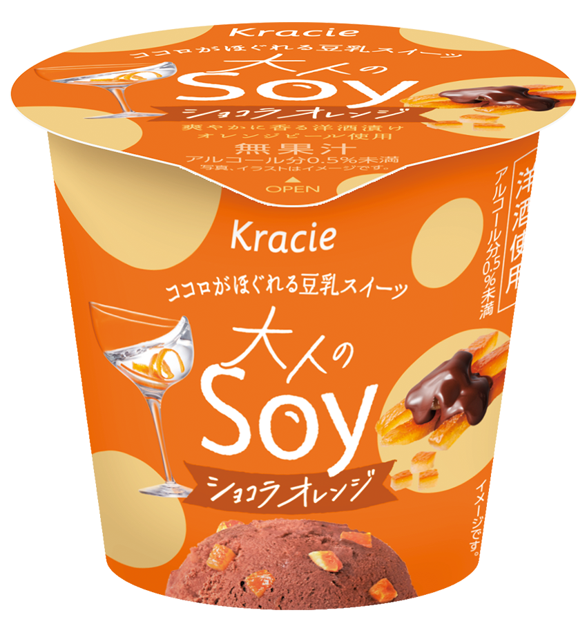「Soy」は、豆乳をはじめとした植物性素材を使用した、カラダにうれしいアイスです。乳製品・卵不使用で、乳・卵アレルギーの方でも安心してお召し上がりいただけます。この度、「Soy」に大人向けのフレーバー「大人のSoy」2種類が加わりました。「大人のSoy ラムレーズン」は、なめらかな口どけとコクのある豆乳アイスに、ラムレーズンを混ぜ込んだアイスです。ダークラムの芳醇な香りをお楽しみいただけます。「大人のSoy ショコラオレンジ」は豆乳アイスに、リキュールに漬けたオレンジピールを混ぜ込んだアイスで、ホワイトキュラソーの香りとオレンジピールの爽やかな酸味が広がります。