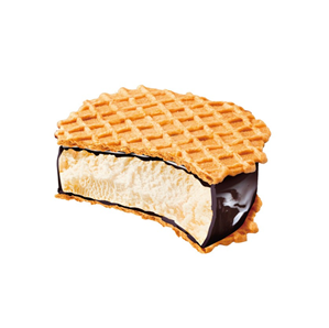 濃厚なバニラアイスをしっとりなめらかなチョコレートでコーティングし、サクサク食感のワッフルでサンドしました。