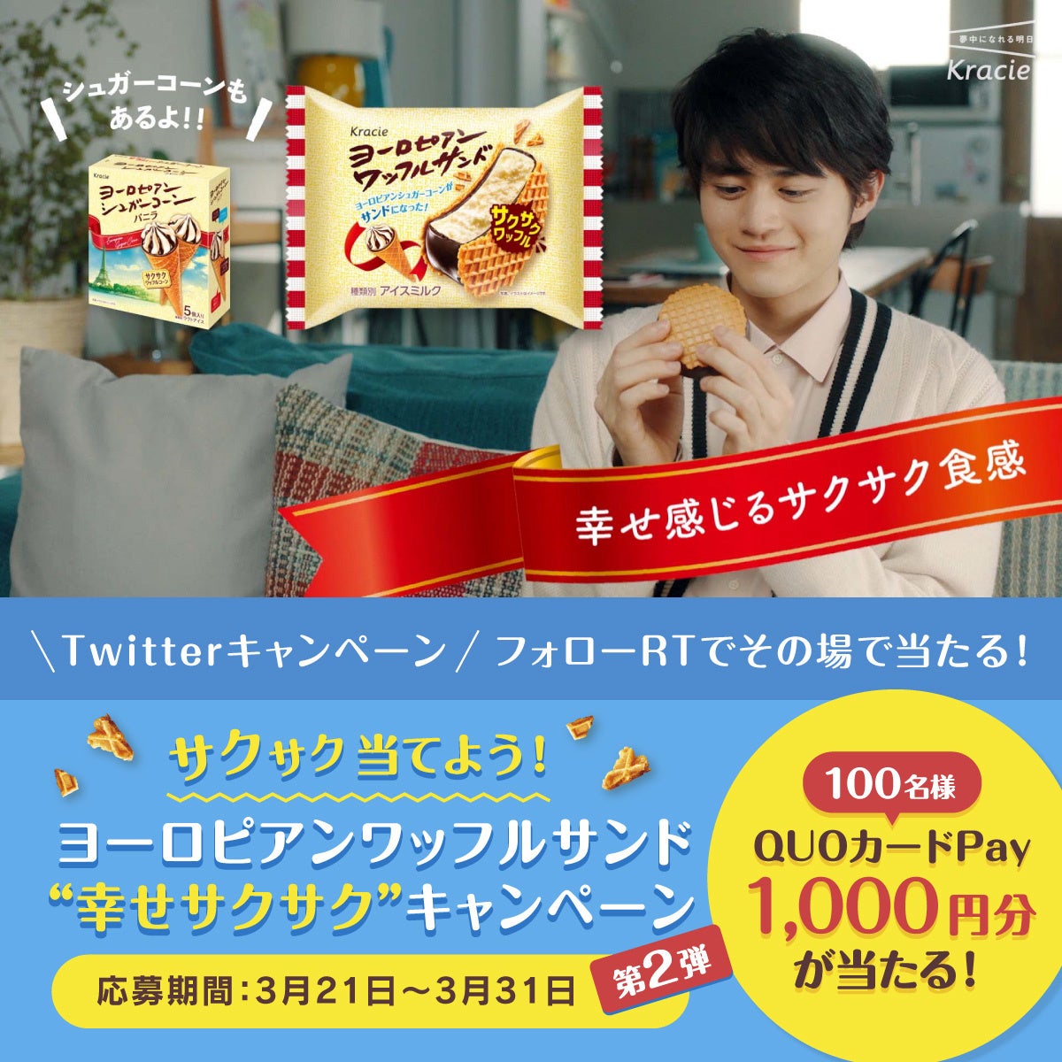 3月21日~3月31日まで「サクサク当てよう!ヨーロピアンワッフルサンド“幸せサクサク”キャンペーン」の第2弾が実施されます。