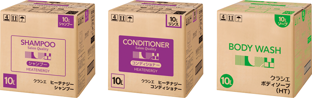 「ヒーテナジー」は、そんな声にお応えして、ヘアサロンと共同開発したサロンクオリティのシャンプー・コンディショナーを、レジャー施設向けに投入した商品です。