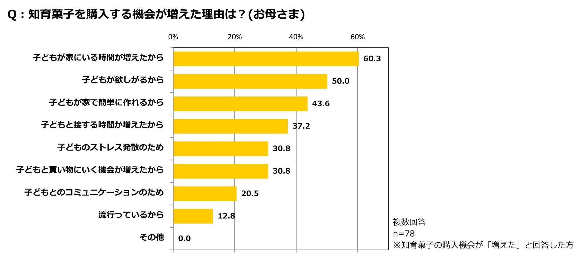 購入機会の増加理由は、「子どもが家にいる時間が増えたから」「子どもが欲しがるから」「子どもが家で簡単に作れるから」。