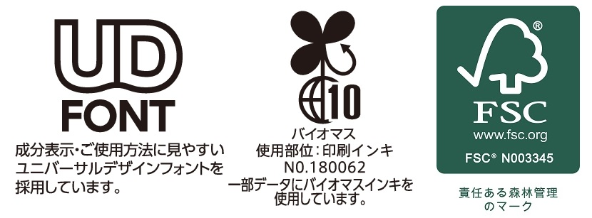成分表示、ご使用方法に、見やすいユニバーサルデザインフォントを採用しました。