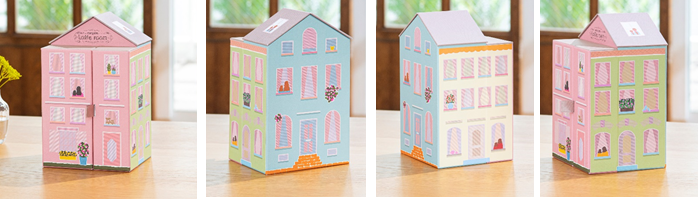 「2人のレディーはじめキットⅡ」の形状は、まるでドールハウス。開くと、ドレッサーに見立てたスペースに、ママと子どもが一緒に使えるビューティアイテムが入っています。開くたびにわくわくするような、レディーのこころをくすぐるデザインに仕上げました。そして、中身を取り出した後も、小物入れとしても長くお使いいただけるこだわりの仕様です。