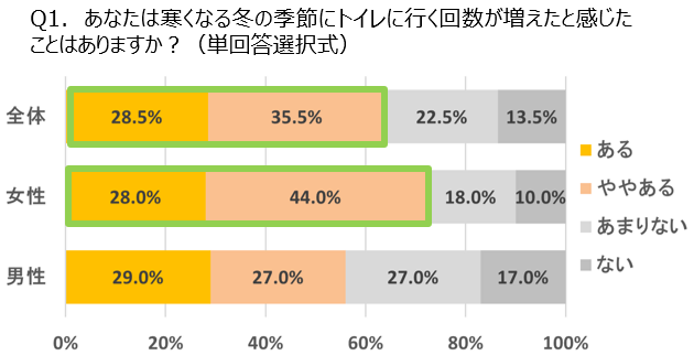 - 6割以上が寒くなる季節にトイレに行く回数が増えたと回答