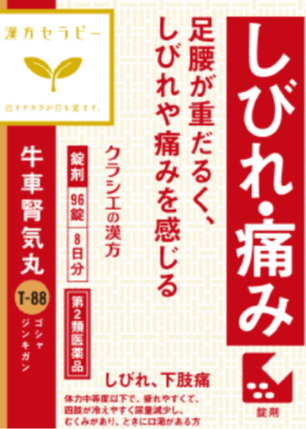 筋肉や骨に栄養分を与え、水分代謝を良くする「八味地黄丸(はちみじおうがん)」という処方に、さらに生薬を加えた処方です。とくに、尿量減少、腰痛、下肢のむくみの強いものなどに用いられるほか、足腰などの痛みやしびれの改善に作用する薬で、下半身の痛みや排尿トラブルなどがある方におすすめです。