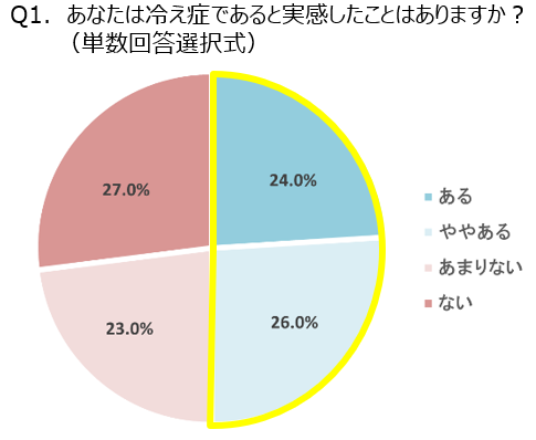 冷え症を実感する女性の約68%が特に手足が冷えるタイプと回答~