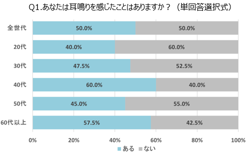 - 2人に1人が耳鳴りを経験、中高年の経験率が高い傾向に