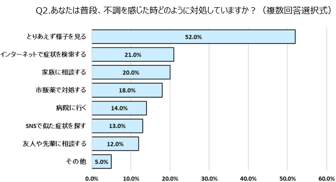 不調を感じたときに2人に1人が「とりあえず様子を見る」と回答