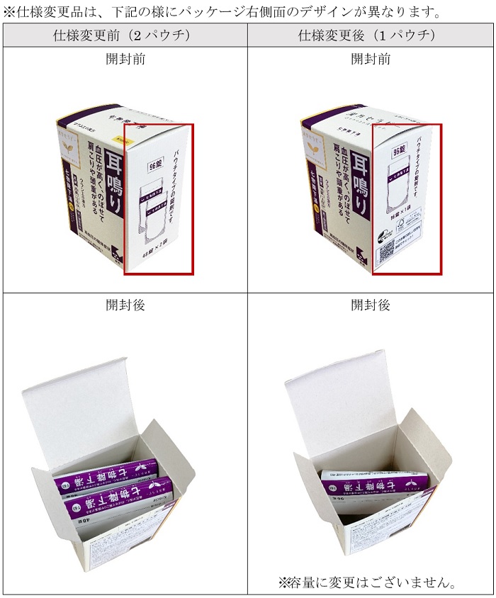 2パウチ仕様の製品について、1パウチ仕様へ変更いたします。