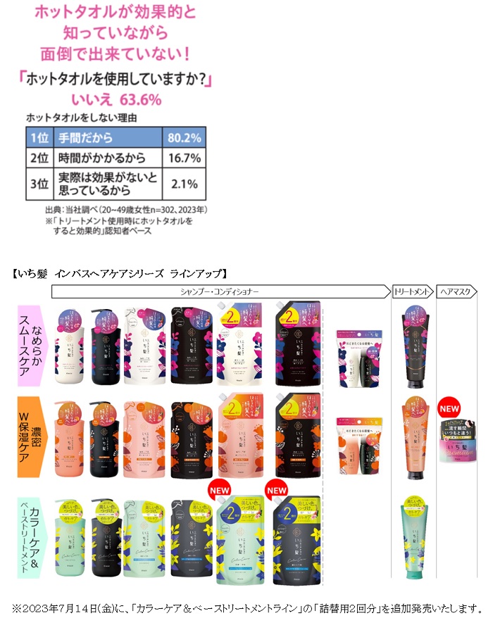 「ヘアマスク」は、「パサつきが気になったとき」や「髪に負担をかけた日」などに使用する方が多く、「塗布後にホットタオルを使って時間をおいて成分を浸透させる」といった使用実態から、効果感や特別感が求められていることがわかります。しかし、トリートメント時にホットタオルをすると効果的と知っていながら、実際にはホットタオルの使用率は約4割と、効果的な美容の知恵を知っていても面倒でできていない、という点(2023年当社調べ)に着目しました。