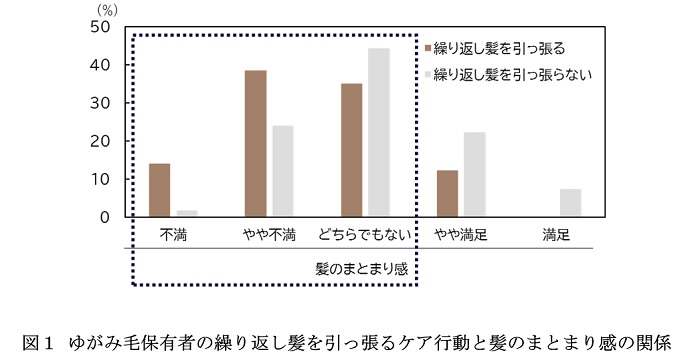 (1)Web調査結果 -ゆがみ毛保有者は髪を引っ張る行為によってまとまり感の低下を実感