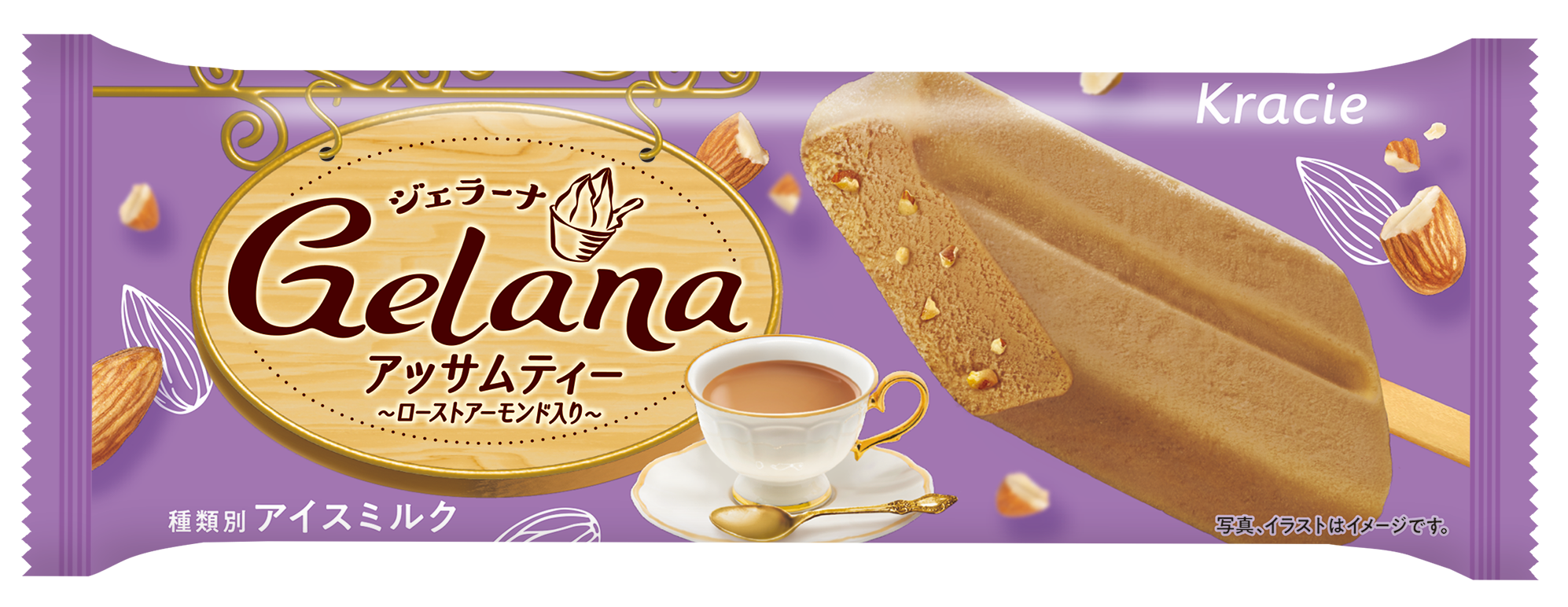 「ジェラーナ アッサムティー」は、ジェラート屋さんで人気の紅茶アイスにアーモンドを混ぜ込んだアイスバーです。紅茶アイスは甘い香りとコクのある味わいのアッサムを使用し、より紅茶の風味を楽しんでいただける味わいに仕上げました。また紅茶アイスに混ぜ込んだシュガーコートしたローストアーモンドが、甘さと香ばしさのアクセントになっています。