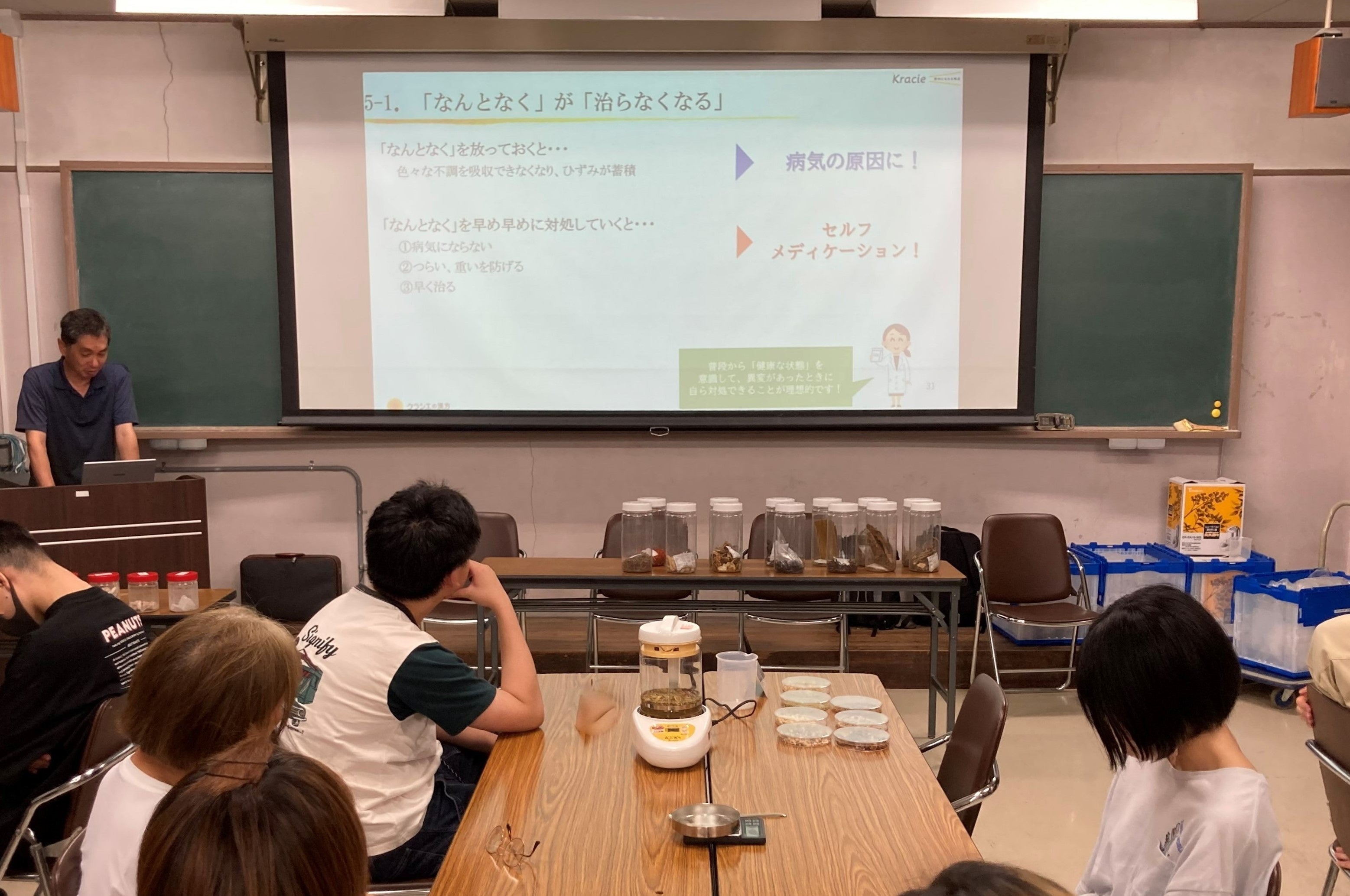 直近では、7 月 31 日(月)と 8 月 21 日(月)に、同会場のNHK 文化センター神戸教室で、自由研究にお悩みの小学生や親子で漢方薬を学びたい方のために、夏休みこども教室「漢方教室 葛根湯を作ってみよう!」を開催し、27名の方にご参加いただきました。その際、ご要望があった「大人向け漢方教室」を、この度 10 月 30 日(月)に実施いたします。