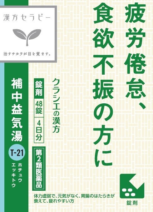 「補中益気湯」は、生命活動のエネルギーである「気」の量が不足した「気虚(ききょ)」の状態の方に用いられる処方です。「気虚になると、常にエネルギー不足の状態になるため、疲れを感じやすくなります。補中益気湯は胃腸を元気にすることで、飲食物の消化吸収機能を高めて、「気(エネルギー)」の生成を促します。「気」を増やすことで、疲労倦怠を改善します。 」