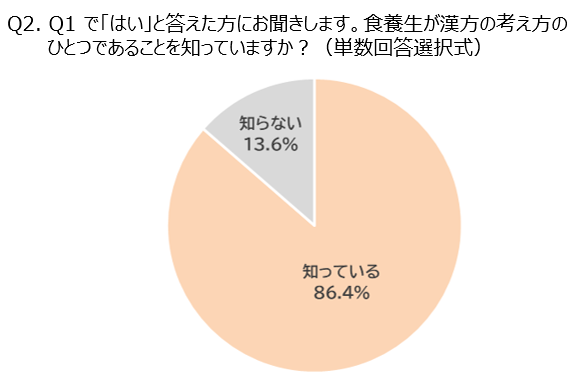食養生を知っている方の86.4%が漢方の考え方のひとつであることを認知