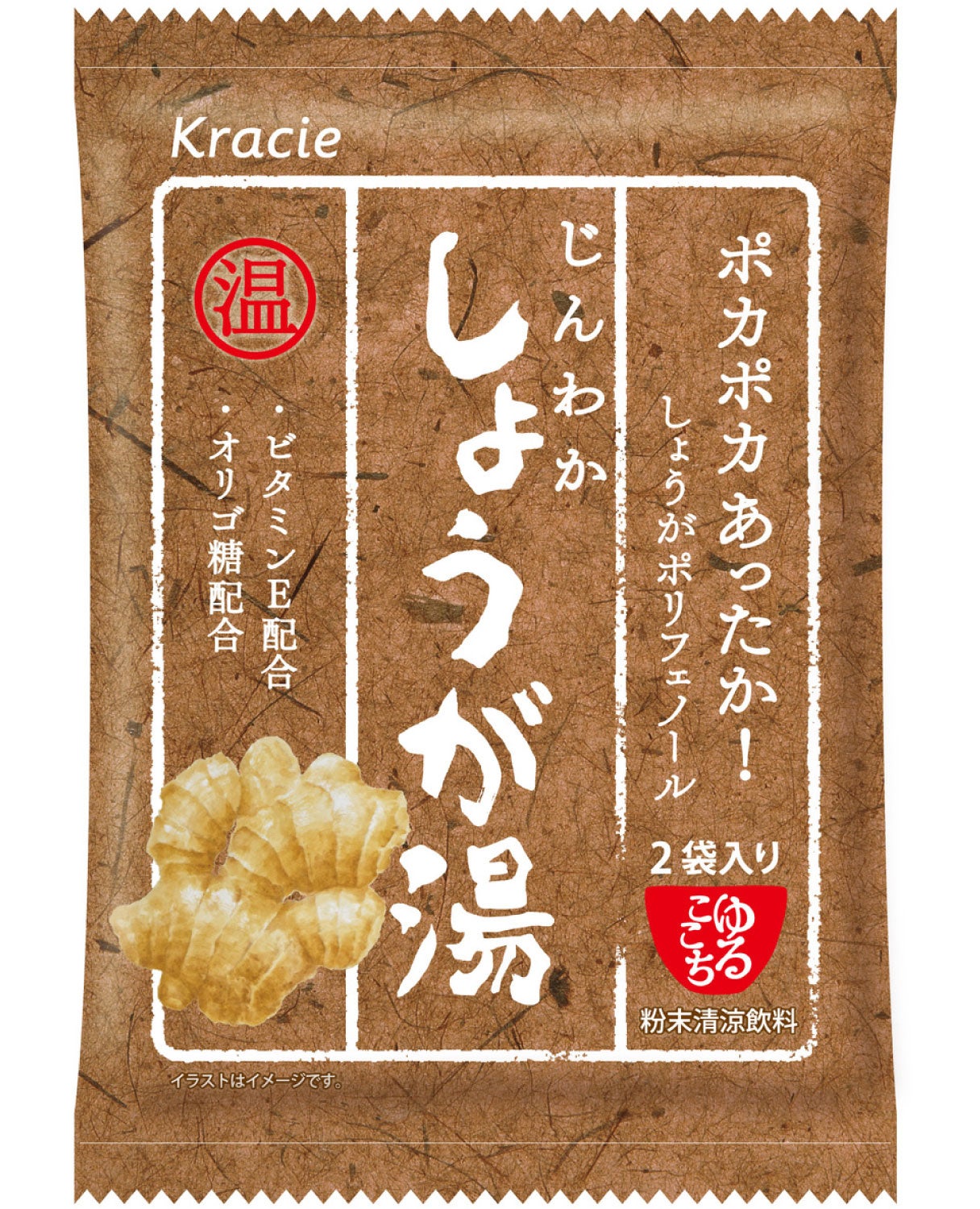 「ゆるここち じんわかしょうが湯」は、お湯に溶かして作る粉末飲料です。しょうがポリフェノール、ビタミンEなど2種類の健康と美容にうれしい成分を配合。更にお腹にやさしい「オリゴ糖」を配合し、寒い時のカラダをサポートします。砂糖を減量し、甘さ控えめでありながら、「とろみ」づけをして、満足の高い品質に仕上げています。