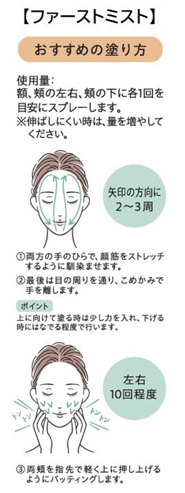・朝と晩、化粧水などで肌を整えたあと、適量を手のひらにとり、顔全体になじませます。