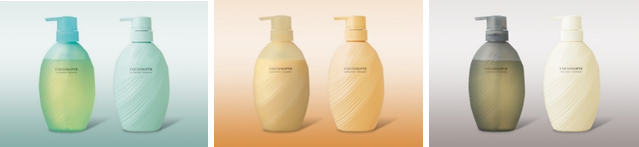 写真左から、「エアリーブルームライン」、「スリーク&リッチライン」、「ピュアスカルプライン」