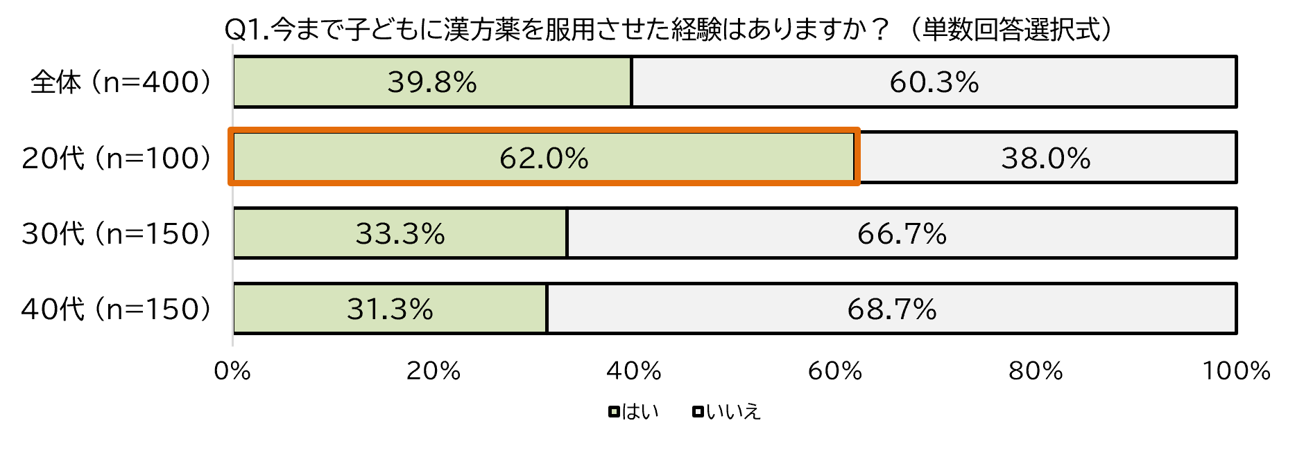 1. 20代の母親の6割が「子どもに漢方薬を服用させたことがある」 と回答