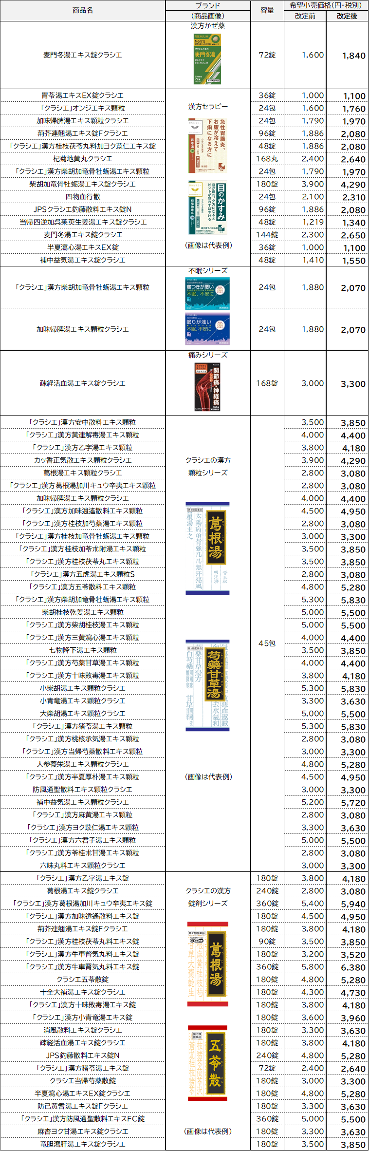 クラシエ薬品株式会社は、2024年8月1日(木)より、以下の商品について価格改定を実施いたします。
