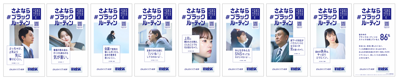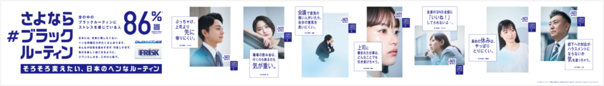 そして本日9月30日より、交通広告「さよなら、#ブラックルーティン」を新宿と大手町で展開いたします。同調圧力「#ブラックルーティン」のモヤモヤに負けず、ジブンらしく毎日を楽しもう!そんな社会への応援メッセージが詰まった広告になっています。
