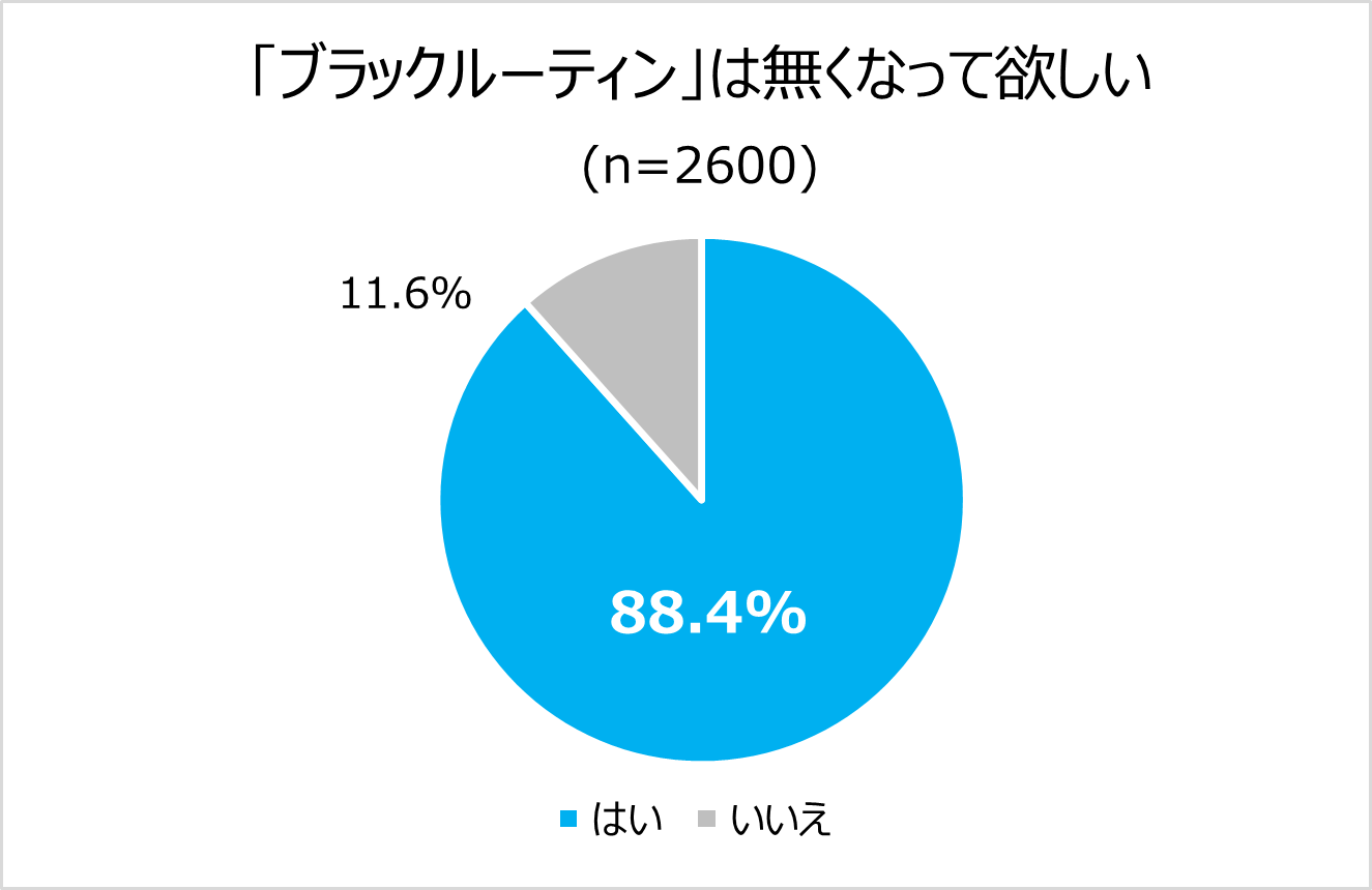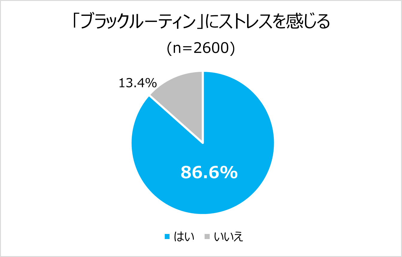 1.世の中の約9割が「ブラックルーティンは無くなってほしい」、「ブラックルーティンにストレスを感じる」と回答。