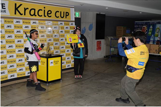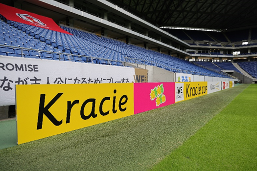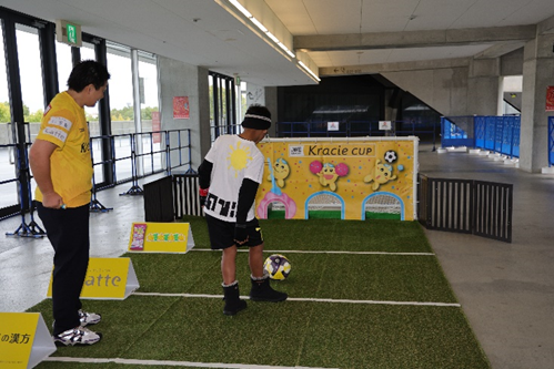 クラシエブースは、ホーム席近くに設置。今シーズンより、リーグカップ戦にPK戦が取り入れられることになったということで、来場者の方にもPKにチャレンジしていただけるよう、ゲームコンテンツ「クラシエプレゼンツ ねるねPKチャレンジ」を展開しました。また、優勝クラブに贈呈されるトロフィーと一緒に写真が撮れるフォトブースも用意されました。