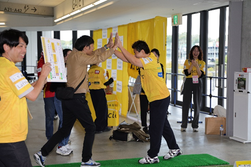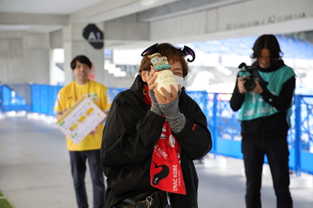 チャレンジに成功し、景品を手にする来場者の方(写真提供:WE LEAGUE)