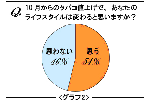 そして、「10月からのタバコの値上げで、あなたのライフスタイルは変わると思いますが?」と尋ねたところ、54%の人が「思う」と、回答しました。<グラフ2>