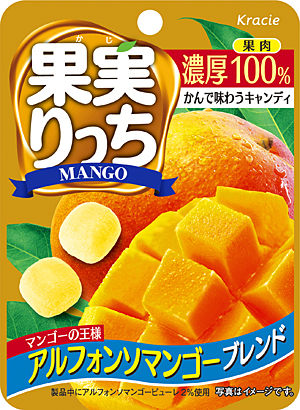 ( 1 ) マンゴーの芳醇な香りとコクのある果肉の濃厚な味わいが、ソフトキャンディ一粒ひと粒に凝縮されています。