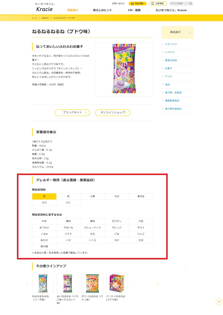 クラシエフーズ全商品の食物アレルギー物質の使用状況が、ホームページから確認できるようになりました
