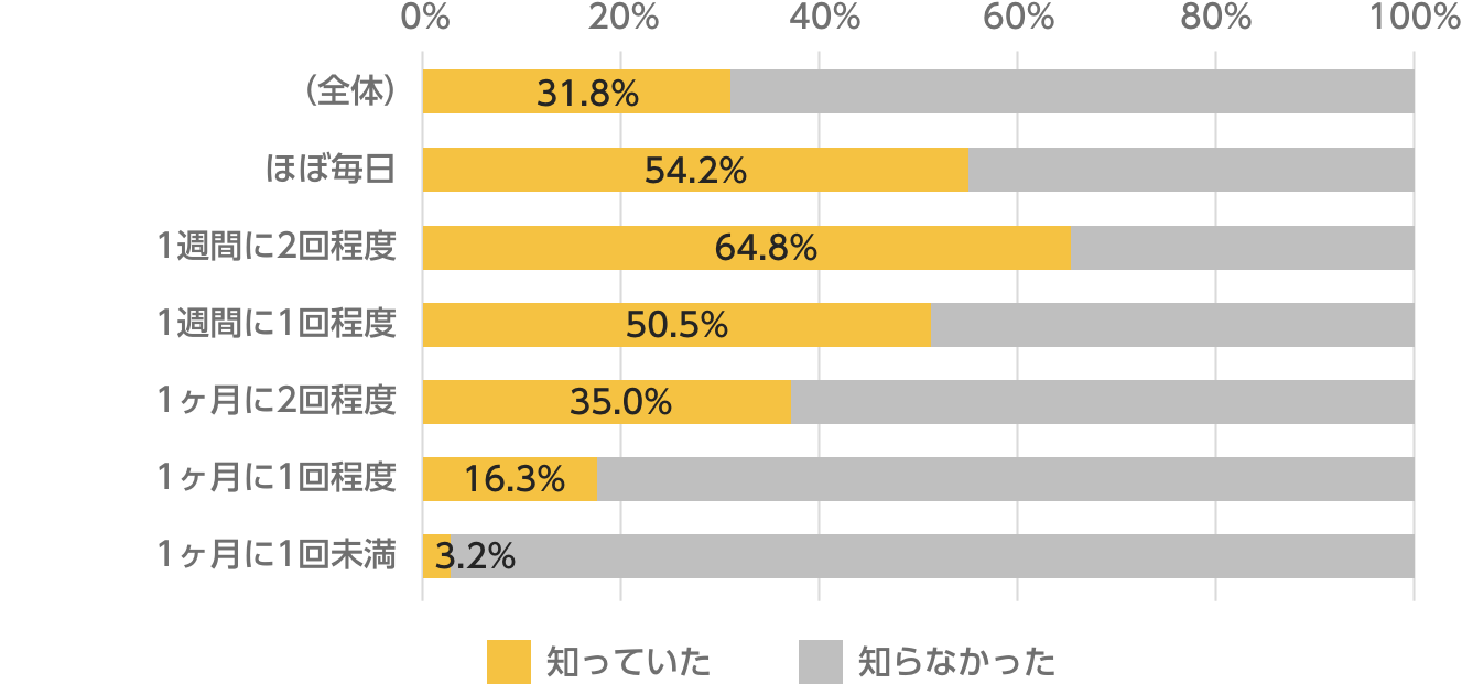 まずは、リニューアルされたことに気がついたかどうかですが、回答者全体では31.8%の方が気がついていたという結果であまり高くはない結果でした。クラシエ企業サイトの来訪閲覧頻度別に見てみると、頻度の高い方であれば、半数以上が気がついた、という傾向になりました。