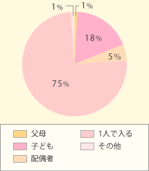 今現在一緒にお風呂に入ることが多い人は誰ですか?という質問では、75%が「1人で入る」とのことでしたが、次は「子ども」が18%、「配偶者」が5%という結果でした。