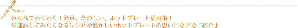 そこで、たんぽぽメンバーおすすめのホットプレートレシピ&楽しい思い出をご紹介!朝昼晩ご飯から、おやつまで幅広いレパートリーに対応できるホットプレートの力を存分に発揮させてみてはいかがでしょう!!